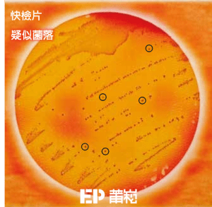 用3M™ Petrifilm™ 沙門氏菌確認片(6538),於高背景菌落。從疑似菌落中鑑定出沙門氏菌菌落。